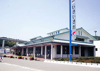 多々羅大橋を背に美しい眺めのある施設です。物産品などのお土産もお求めできます。