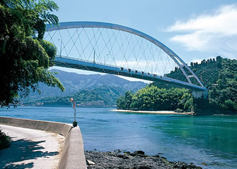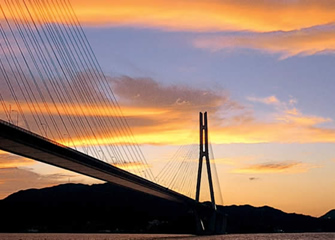 多々羅大橋は橋長1480m、中央支間長890mの世界有数の斜張橋で、フランスのノルマンディー橋と姉妹橋縁組を…