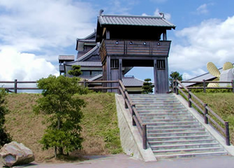 伯方ふるさと歴史公園ロケーションガイド伯方島公園・施設歴史資料館・美術館 中世前期の山城を再現したふるさと歴史公園居館は内部に歴史資料が展示されています。展望回廊があり瀬戸内の多島美を楽しむこともできます。