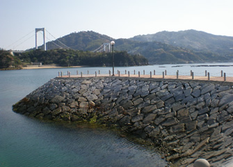伯方大島大橋から見える椰子の木が立ち並ぶ海水浴場です。伯方インターから左へ走ってすぐの場所。西に面しているので正面に日が沈みます。夕日の美しい海水浴場です。