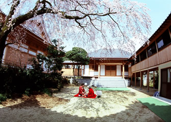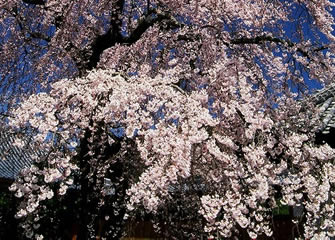 本堂の横に樹齢約100年のシダレザクラがあり、幻想的な雰囲気が楽しめます。