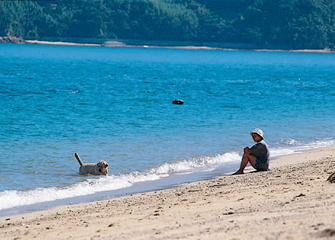 のんびりした浜辺で、地元の子供達が多く遊んでいます。島の昔ながらの海水浴場と言うイメージです。