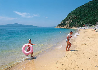 千年松海岸には民宿やキャンプ場もあり、夏には海水浴客で賑わいます。