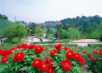 今治インターを出てすぐ。春には、ボタン、桜をはじめ多くの花々で満たされます。ゆったりと散策できる公園です。